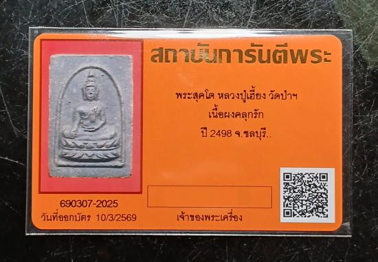 เคาะเดียวต่ำกว่าทุน...พระสุคโต หลวงปู่เฮี้ยง วัดป่า เนื้อผงคลุกรัก ปี2498 จ.ชลบุรี สวยๆครับฟอร์มประกวด พร้อมบัตรรับรองจากทางเว็บ