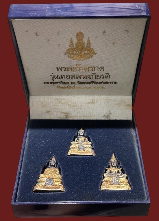 พระแก้วมรกต 3 ฤดู 3 องค์ รุ่นเทิดพระเกียรติ ปี40 วัดพระศรีศาสดาราม กทม. เนื้อ 2K สภาพสวย ตอกโค๊ตใต้ฐานทุกองค์ มาพร้อมกล่องเดิมๆ |