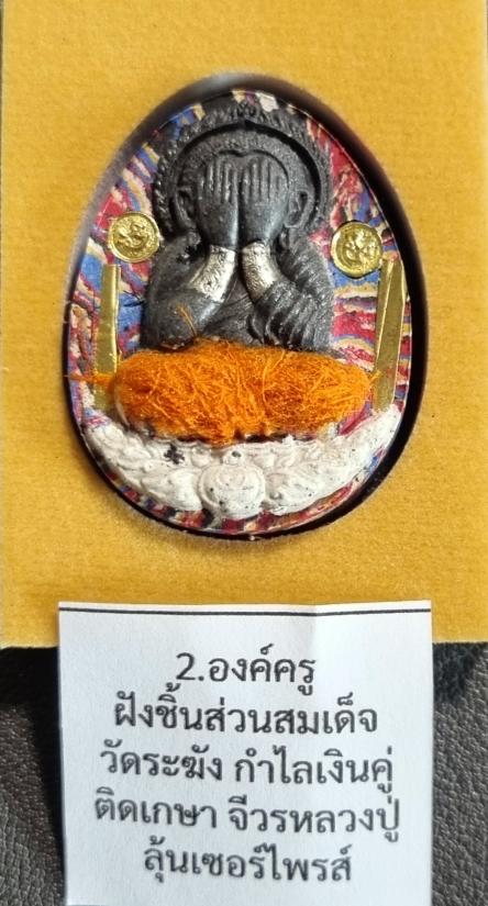 - รก.2 องค์ครู ฝังชิ้นส่วนสมเด็จวัดระฆัง กำไลเงินคู่ ตะกรุดทอง ติดเกศา จีวรหลวงปู่