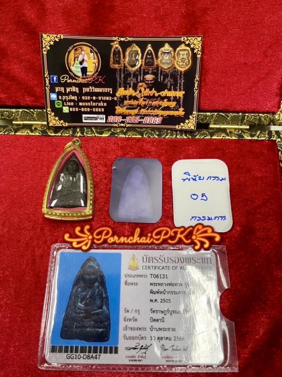 หลวงพ่อทวด วัดช้างให้ จังหวัดปัตตานี เนื้อว่าน รุ่นพินัยกรรม พิมพ์ใหญ่หน้ากรรมการ ปี ๒๕๐๕ สภาพพระสวย ฟอร์มพระระดับประกวด มีรางวัลการันตีงานสมาคม หน้าตาติดชัด จมูกโด่งๆ ผิวแห้งเดิมๆ มีรานบ้างตามธรรมชาติพระเนื้อว่าน พระแท้ดูง่ายสบายตา มีแร่ด้านหลังชัดเจน ด้านหลังองค์พระ มักจะมีเม็ดแร่สีเหลืองอมทอง ทั้งขนาดใหญ่และเล็ก ปรากฏอยู่ทั่วทั้งองค์พระ องค์นี้สวยสมบูรณ์ พระไม่หัก ไม่อุด ไม่ซ่อม ไร้ศัลยกรรมเนื้อหาพิจารณาง่าย มีเม็ดแร่สีเหลืองอมทองตามตำรา มาพร้อมบัตรสมาคมผู้นิยมพระเครื่องพระบูชาไทย 1 ใบ มีติดรางวัลที่ 3 งานจัดโดยสมาคมผู้นิยมพระเครื่องพระบูชาไทย งานจังหวัดเพชรบูรณ์ ตุลาคม 2566 พร้อม Film X-ray เรียบร้อยครับ เลี่ยมตลับทองอย่างดีพร้อมใ้ช้ 1 ใบ