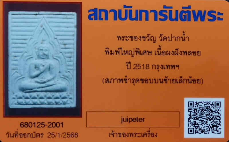 พระของขวัญ วัดปากน้ำ พิมพ์ใหญ่พิเศษ เนื้อผงฝังพลอย ปี 2518 พร้อมบัตรการันตรีพระ