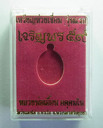 เหรียญ เจริญพร ห่วงเชื่อม หลวงพ่อเอื้อน วัดวังแดงใต้ จ.อยุธยา ปี 2559 พิมพ์เล็ก เนื้อนวะหน้ากากเงิน สภาพออกจากวัด เก็บอย่างดี พร้อมกล่องเดิมครับ