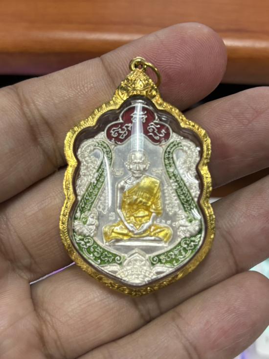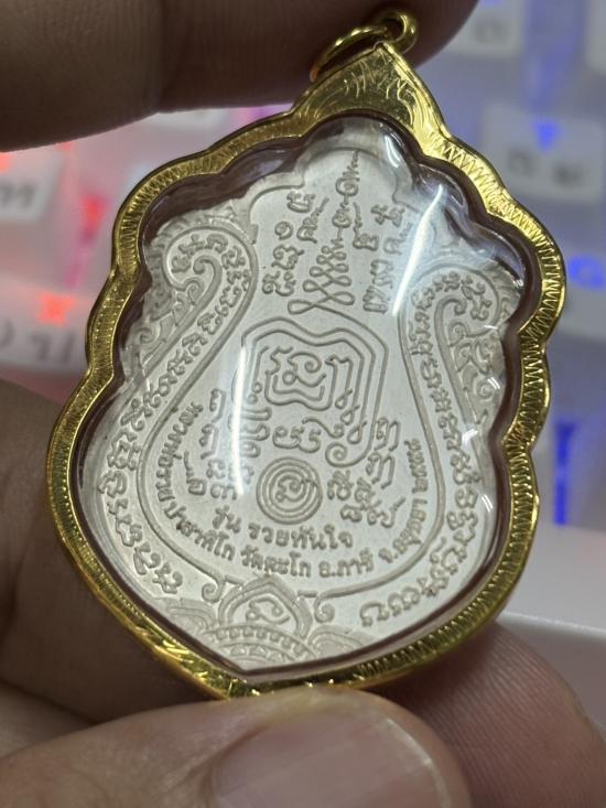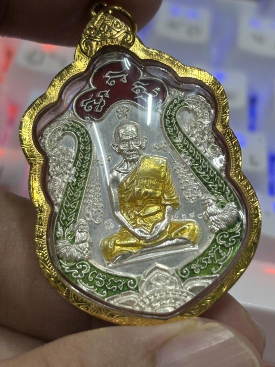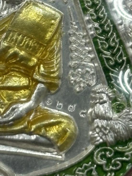 HOT!!! เหรียญเสมารวยทันใจ ปี 2558 เนื้อเงินลงยาสีเขียว เลขโค๊ด 1278 พร้อมเลี่ยมทอง หลวงพ่อรวย วัดตะโก เคาะเดียว