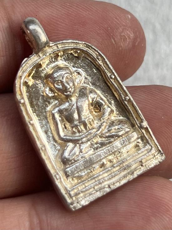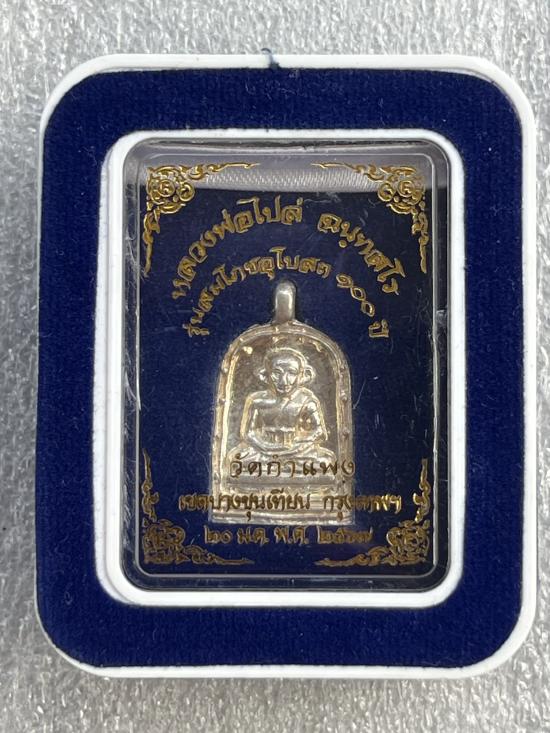 เหรียญจอบพิมพ์เล็ก เนื้อเงิน หลวงพ่อไปล่ รุ่น 4 วัดกำแพง กรุงเทพ สวยเดิมพร้อมกล่อง