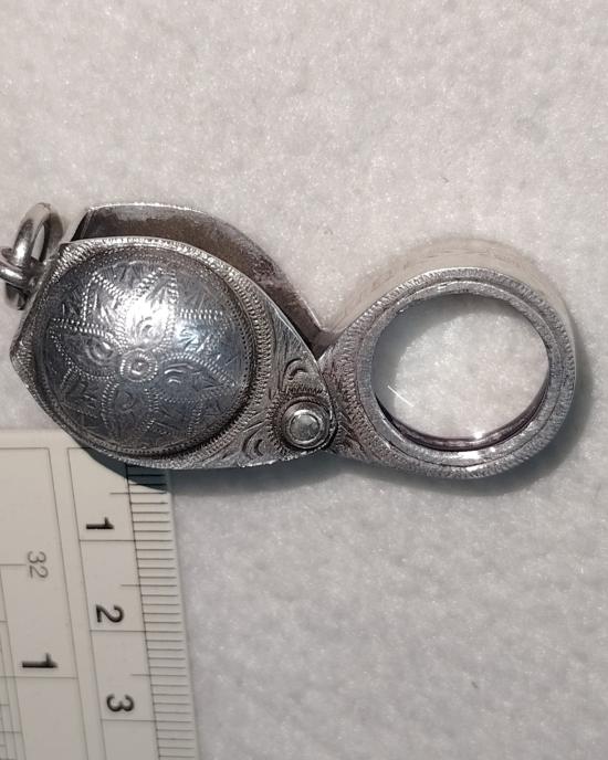 กล่องส่องพระบอดี้ชุบเงินแกะลายไทยทั่วตัวเลนส์ใสดึงแรงขนาดน่าจะประมาน15xเลนส์ไม่ทราบแน่ว่าของอะไรแต่ส่องแล้วใสดึงซูมแรงน่าจะบอสร้อมรึป่าวไม่ฟันธงพิจารณาให้ชอบครับท่านเปิดต่ำกว่าทุน