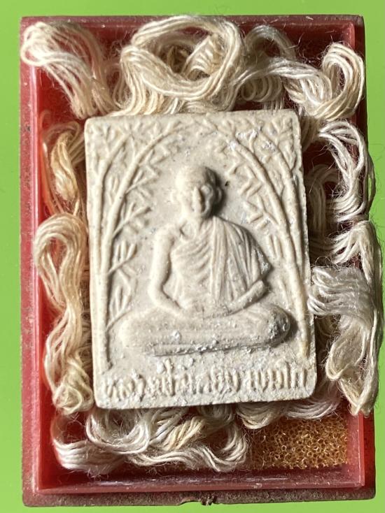 พระผงรูปเหมือนซุ้มกิ่งไผ่ หลวงพ่อเกษม เข้ามโก สำนักสุสานไตรลักษณ์ จังหวัดลำปาง สร้างปี 2528(มีสายสินในพิธีมาในกล่องด้วยคับ)