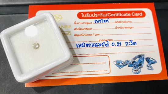 ชื่อพระเครื่อง เพชรแท้ธรรมชาติ เหลี่ยมเบลเยี่ยมคัต แกะจากตัวเรือนสินหลุดจำนำ น้ำหนักรวม 0.21 กะรัต น้ำประมาณ 96VS