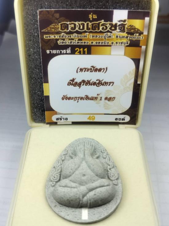 พระปิดตา รุ่น ดวงเศรษฐี แจกในพิธี เนื้อ สุริยันต์จันทรา ฝังตะกรุดเงินแท้ 1 ดอก สร้าง 49 องค์ หมายเลข 39 หลวงปู่โต๊ะ วัดถ้ำสิงโตทอง ราชบุรี มวลสารและพิธีดีมาก มีกล่องเดิมจากวัด |