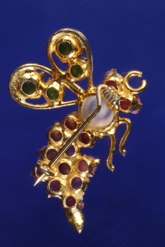 เข็มกลัดทับทิม+หยก ตัวเรือนชุบทอง น้ำหนักรวม 2.1 กรัม