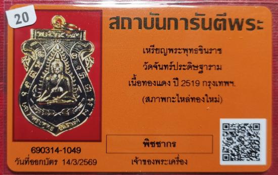 หรียญพระพุทธชินราช วัดจันทร์ประดิษฐาราม เนื้อทองแดงกะไหล่ทองใหม่ ปี2519 จ.กรุงเทพฯ ลป.โต๊ะ ปลุกเสก