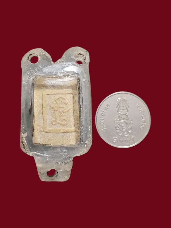 ชื่อพระเครื่อง นางกวักหลังยันต์ เนื้อผงน้ำมัน หลวงพ่อกวย วัดโฆษิตตาราม ปี 15 เลี่ยมพลาสติก