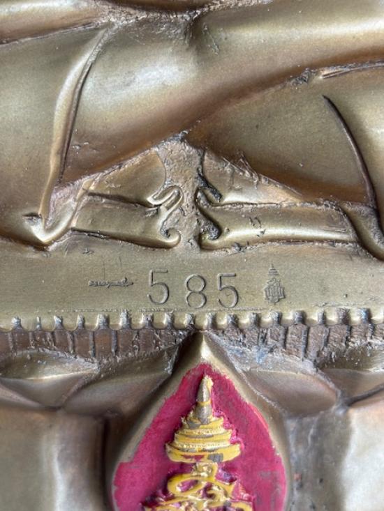รายละเอียด พระบูชาไพรีพินาศ ญสส.รุ่น นวฤทธิ์โภคทรัพย์ ตอกหมายเลข 585 ตอกโค๊ตครบ ปี 2544 หน้าตัก 5 นิ้ว เนื้อสำริดเงิน จำนวนการสร้าง 999 องค์ ใต้ฐานบรรจุเหรียญไพรีพินาศเนื้อ นวะโลหะ