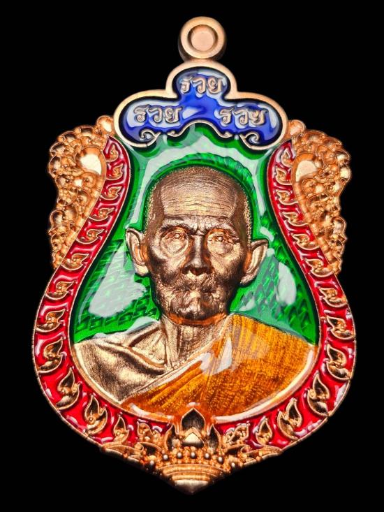 หลวงปู่ฝั้น ปสาโท วัดหน้าผา จ.เพชรบูรณ์ (เนื้อเนื้ออาบนาคลงยาพื้นเขียว) |