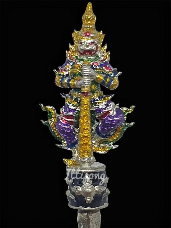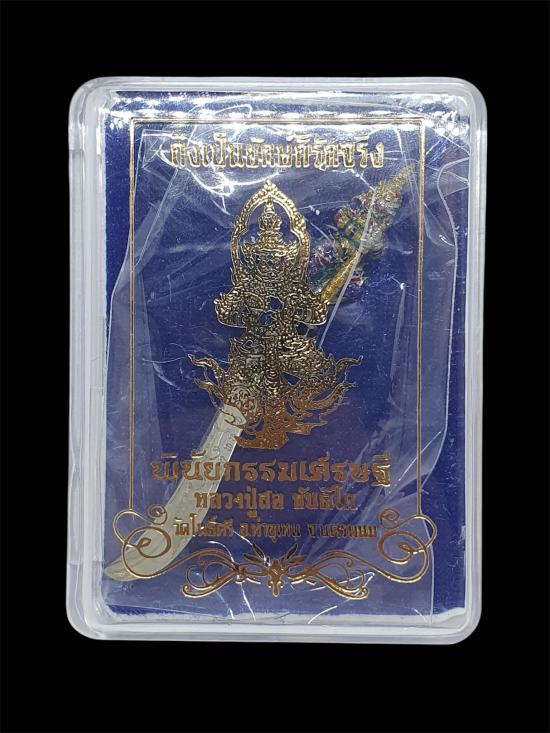 มีดหมอท้าวเวสสุวรรณมหาปราบ รุ่นพินัยกรรมเศรษฐี หลวงปู่สอ วัดโพธิ์ศรี จ.นครพนม มีกล่องครบ เนื้อทองขาวลงยาราชาวดี ขนาดยาว 3 นิ้ว |