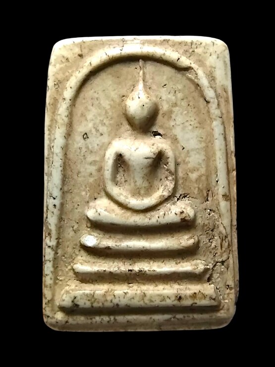 องค์นี้เป็นพระสมเด็จพิมพ์พระประธาน สภาพผ่านการใช้ เนื้อจัดมากแก่ผงพระสมเด็จมองเห็นมวลสารเม็ดชิ้นส่วนสมเด็จบางขุนพรหมแตกหักที่นำมาบดผสมเป็นเก้อนๆเยอะเลยครับ พระดีปีลึก เคาะเดียว