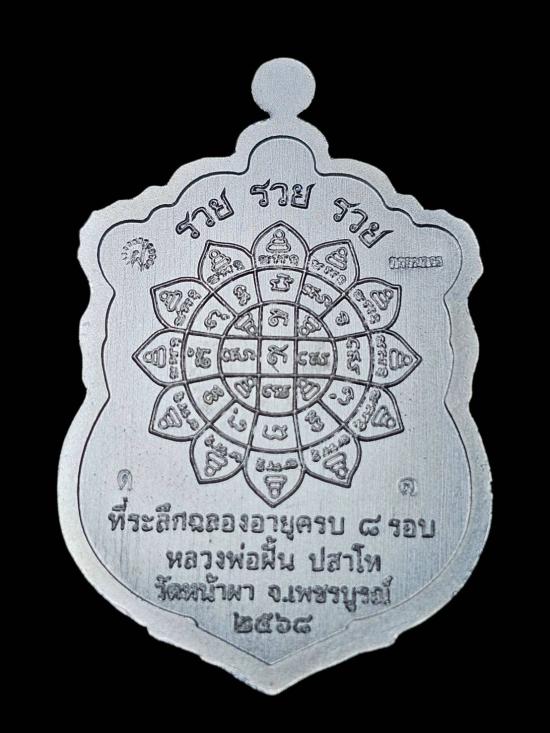 หลวงปู่ฝั้น ปสาโท วัดหน้าผา จ.เพชรบูรณ์ (เนื้ออาบเงินฝังพลอยแดง เลข 1) |