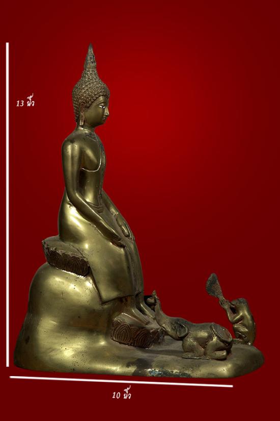 วัดใจเคาะเดียวแดง 110 / พระบูชาปางป่าเรไลย์ ไม่ทราบที่ เนื้อโลหะผิวหิ้งๆ ขนาดใหญ่ ฐานล่างยาว 10 นิ้ว สูง 13 นิ้ว (มีภาพวัดขนาดที่รูปเพิ่มเติม) สวยๆ วัดใจขายทุกราคาครับ