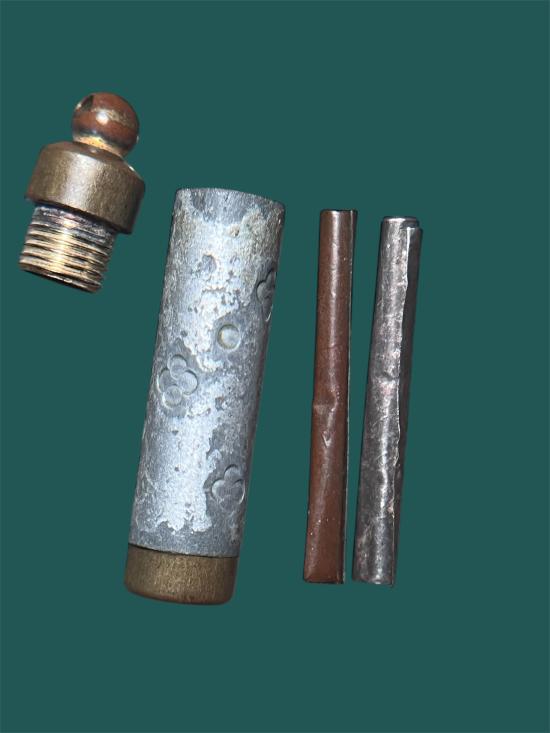 ตะกรุดสาริกาเนื้อเงินกับเนื้อทองแดงพร้อมหลอดใส่ |