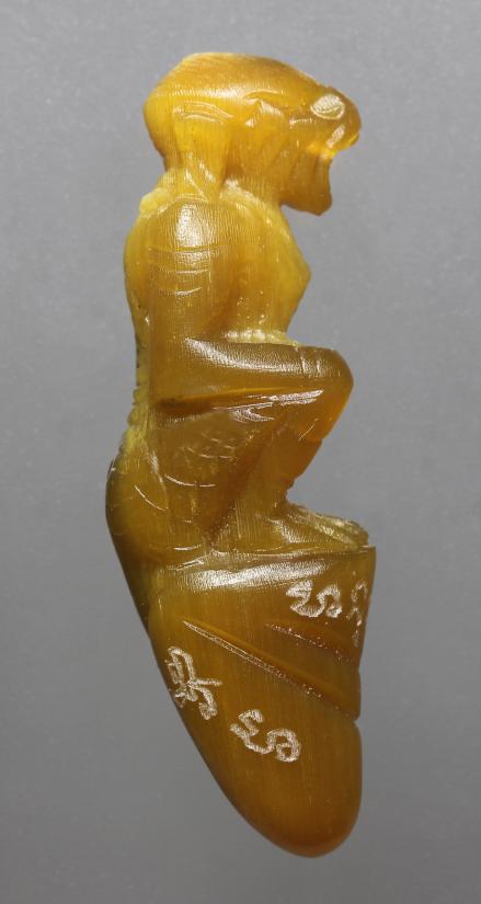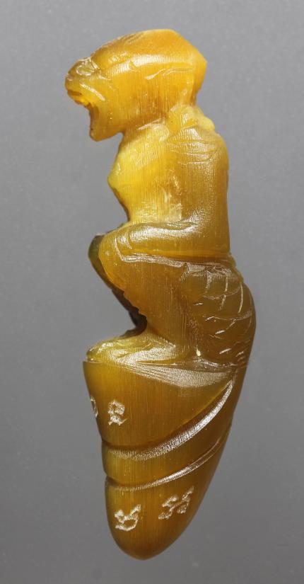 (คัดสวย เคาะเดียว) หนุมานนั่งเขี้ยว หลวงพ่อสิน แกะสลักเนื้อเขาควายเผือก สีน้ำผึ้งนิยมม ขนาดยาวประมาณ 2 นิ้วกว่า ๆ