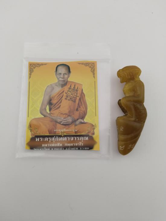 (คัดสวย เคาะเดียว) หนุมานนั่งเขี้ยว หลวงพ่อสิน แกะสลักเนื้อเขาควายเผือก สีน้ำผึ้งนิยมม