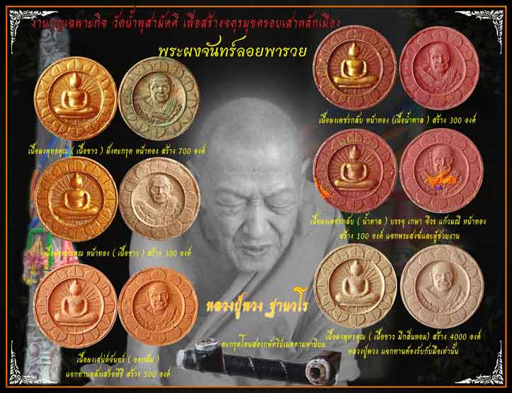พระผงจันทร์ลอยพารวย หลวงปู่พวง วัดน้ำพุสามัคคี จ.เพชรบูรณ์ เนื้อเพชรกลับ(น้ำตาล) บรรจุเกษา จีวร แก้วมณี หน้าท้อง จำนวนการสร้าง100องค์ แจกพระสงฆ์และผู้ช่วยงาน
