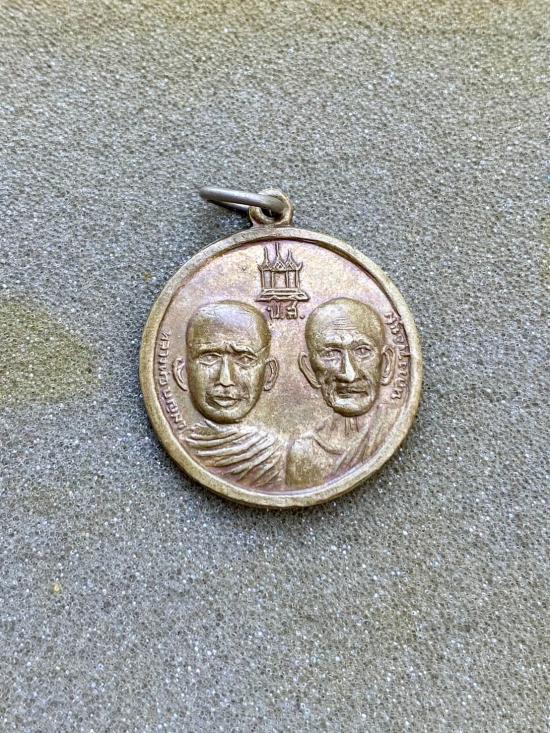 เหรียญสองอาจารย์ หลวงพ่อบุญมา หลวงพ่อมุม เนื้ออัลปาก้า มีจาร