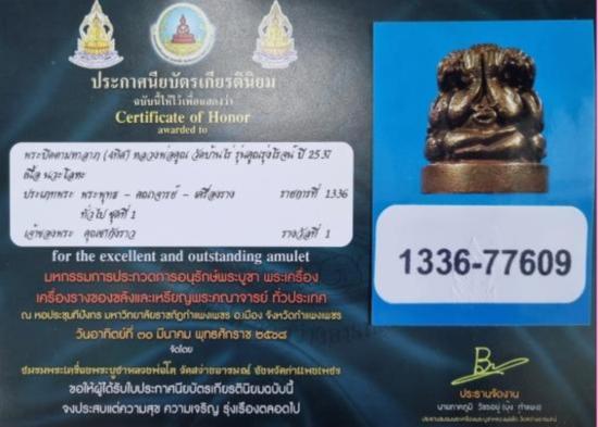 พระปิดตาสี่ทิศ รุ่นคูณรุ่งโรจน์ เนื้อนวโลหะ ปี 2537 พร้อมใบประกาศ ติดรางวัลที่ 1 งานจังหวัดกำแพงเพชร (งานสมาคมฯ)