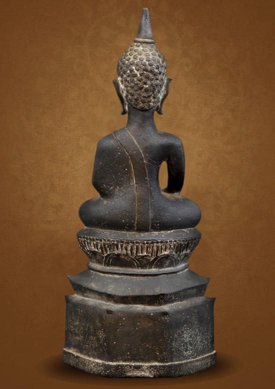 พระพุทธรูปสำริดปางมารวิไชย สมัยเชียงแสนแบบสิงห์๓ ฐานสำเภา (ลงกรุ) อายุราว ศตวรรษที่ 21-23 อายุราว 300-400 ปี ลงรักปิดทองแล้วขัดผิวโบราณ (ผิวขัดเก่า) ผิวหิ้งๆเดิมๆ ไม่มีอุดซ่อม