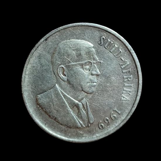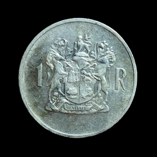 เหรียญ 1 แรนด์ (1 Rand) ของประเทศแอฟริกาใต้ รุ่นปี ค.ศ. 1969 ซึ่งเป็นเหรียญที่ระลึกวาระการสิ้นสุดวาระการดำรงตำแหน่งประธานาธิบดีของ ดร. ที.อี. ดองเกส เนื้อเงิน 80% น้ำหนัก 15 กรัม |