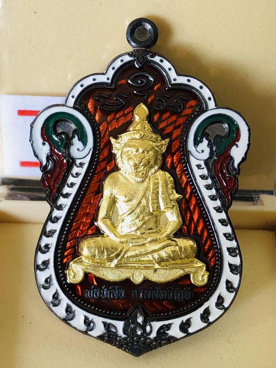 เหรียญเสมาพ่อปู่เสือรุ่นแรกหลวงพ่อเกาะ วัดท่าสมอ จ.ชัยนาท ศิษย์หลวงพ่อกวย อาจารย์เทียม วัดหนัง ร่วมปลุกเสก เนื้อทองแดงรมดำลงยาพี้นส้ม หน้ากากทองระฆัง ลงยาขอบขาว เลข 46 พร้อมกล่องเดิม |