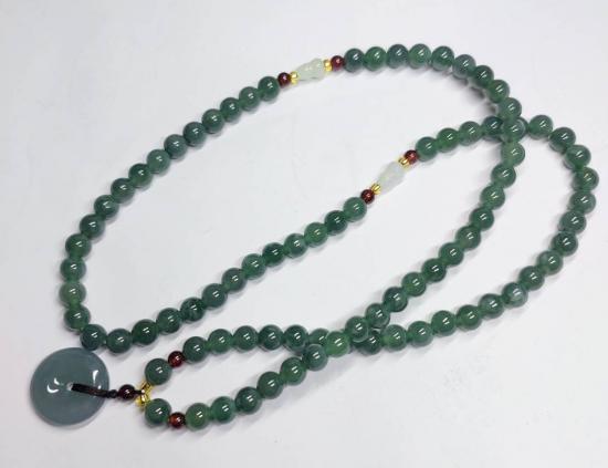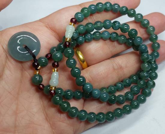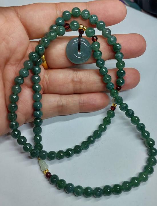 ***วัดใจ***สร้อยหยกจักรพรรดิ์ ขั้นด้วยโกเมน พร้อมจี้ สวยๆ เม็ด 6 มิล ยาว 22 นิ้ว