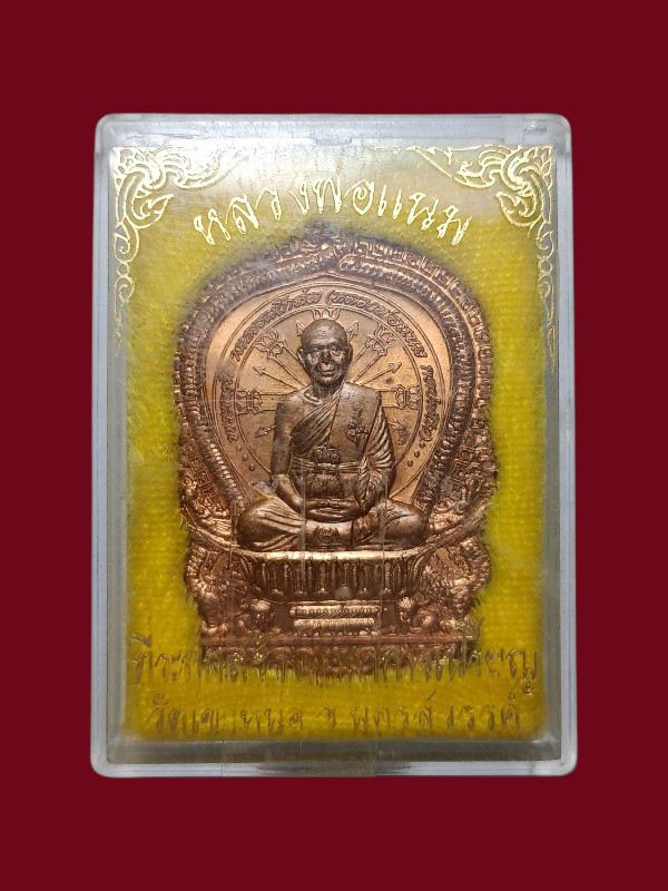 เหรียญนั่งพาน หลวงพ่อแนม วัดเขาหน่อ รุ่นที่ระลึกสร้างศาลาการเปรียญ เนื้อทองแดง ปี 2539 จังหวัดนครสวรรค์