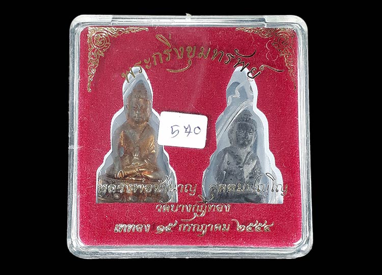 - พระกริ่งเนื้อสัมฤทธิ์ ฐานปิดแผ่นทองชนวนก้นเบ้า + พระกริ่งเนื้อตะกั่ว ฐานปิดแผ่นทองชนวนก้นเบ้า หมายเลข 570 + เลี่ยมกันน้ำให้แล้วครับพร้อมกล่องเดิมครับ