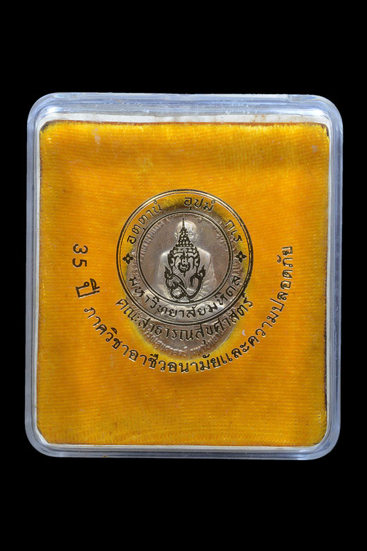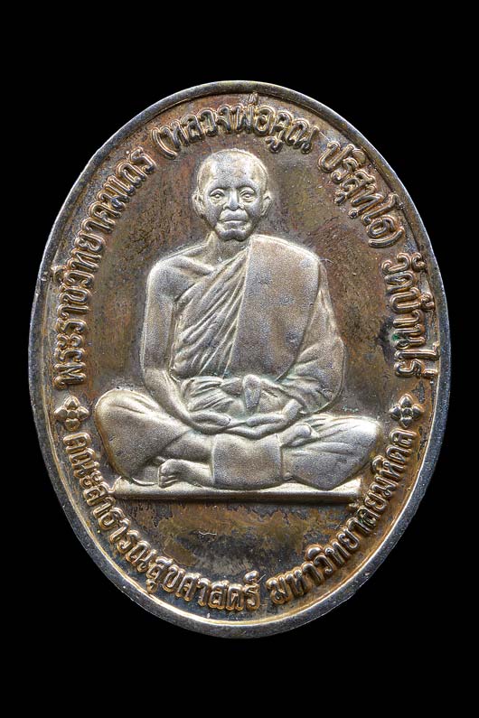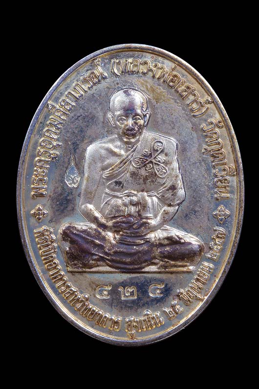 เหรียญ พระราชวิทยาคม หลวงพ่อคูณ วัดบ้านไร่ และ พระครูอุดมศิลาภรณ์ หลวงพ่อเสาร์ วัดกุดเวียน ( เนื้อนิกเกิลกะไหล่เงิน ) หมายเลข 424 พ.ศ.2547 ( กล่องเดิม )