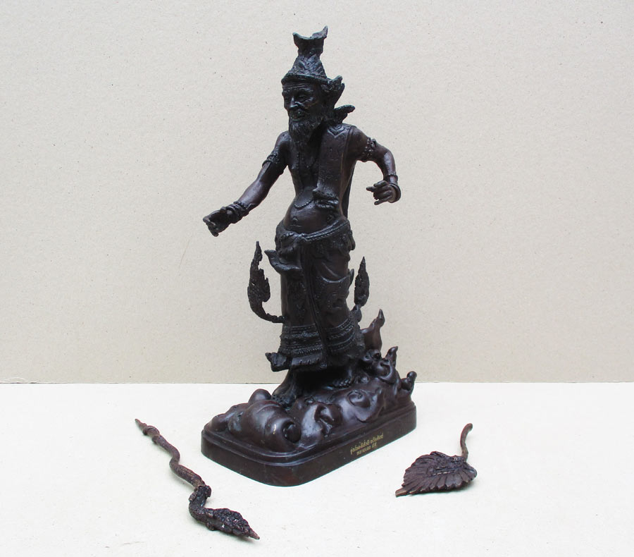 พระฤาษีเดินดงทรงฤทธิ์ รุ่นโชคดี มั่งมี ทวีทรัพย์ พระอาจารย์วิรุต ญาณสํวโร วัดสันมะเหม้า อ.พาน จ.เชียงราย พ.ศ.2559 เนื้อโลหะรมมดำ สูงรวม 15 นิ้ว ถอดได้ 3 ถอด !!