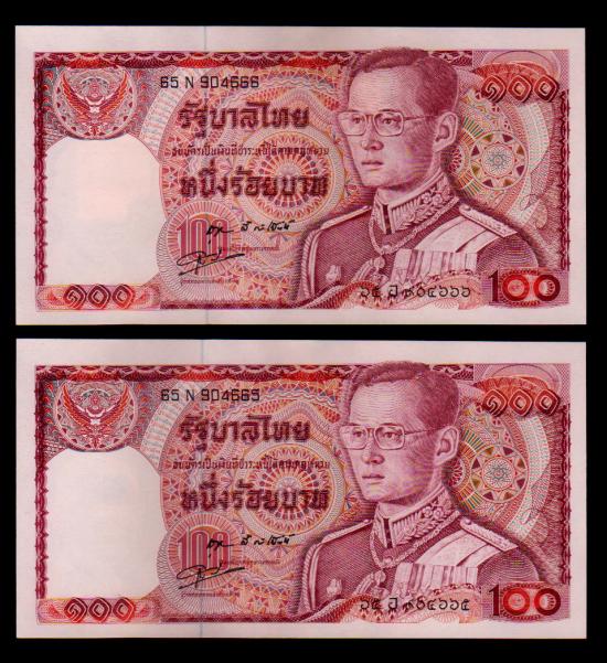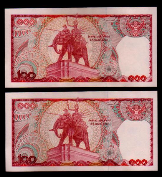 ## ธนบัตร 100 บาท ## ช้างแดง ## หกหลัก ## 9 หน้า ## เรียงเลข 2 ฉบับ ## UNC