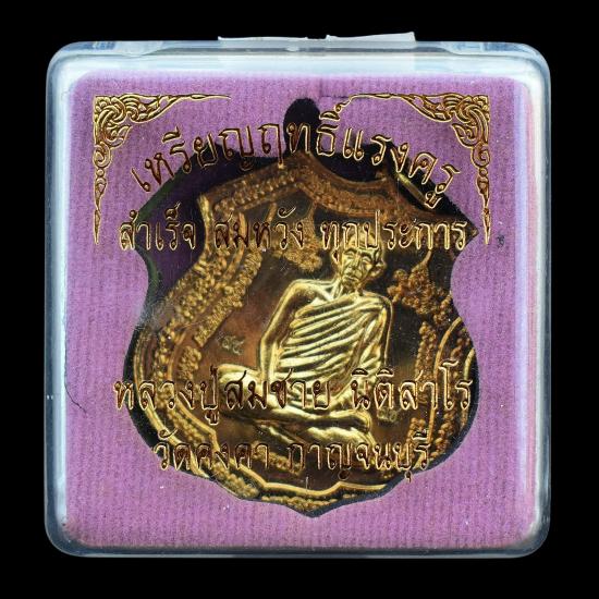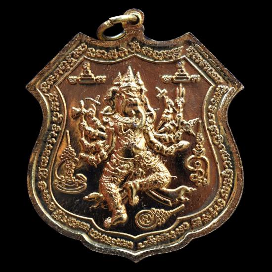 *** เคาะเดียวแดง ทุกรายการ *** เหรียญฤทธิ์แรงครูหลังพระพิฆเณศ เนื้อทองทิพย์ หลวงปู่สมชาย วัดคงคา กาญจนบุรี ปี 2557 มีกล่อง สภาพตามรูป (No.2)