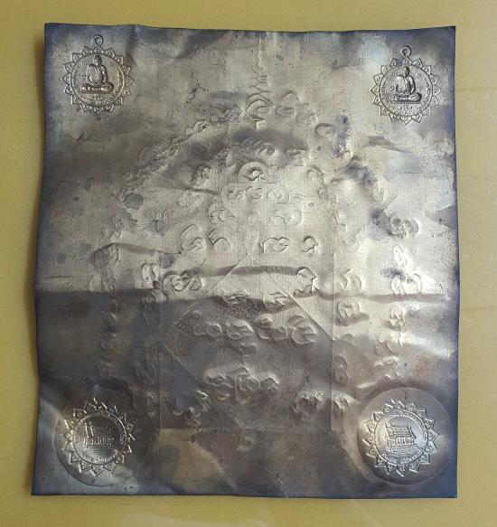 วัดใจแผ่นจาร หลวงปู่บุญพิน วัดผาเทพนิมิต ขนาดประมาณ 7 x 8 นิ้ว ประมาณนะครับ ไม่มีไม้บรรทัดวัด อาจจะกว้าง หรือแคบกว่านี้ก็ได้ ถามครูอาจารย์ที่วัดว่าท่านจารเอง ประทับเหรียญฉลองโบสถ์ แบบนี้ไม่ค่อยเจอ |