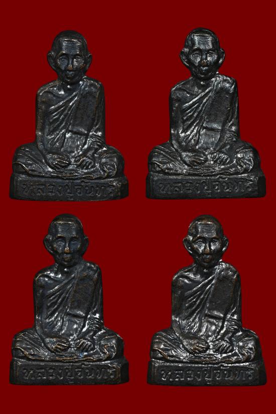 พระกริ่งรูปเหมือนปั๊ม พ่อท่านจันทร์ กริ่งเหล็กไหล เนื้อทองแดงเถื่อน วัดทุ่งเฟื้อ จ.นครศรีธรรมราช พ.ศ. 2528 (รับวัตถุมงคล 4 องค์ตามภาพ)