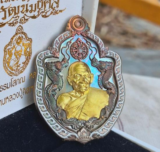 วัดใจ _เนื้อนวะโหะผิวม่วงๆคัดสวยๆ_ ราคาจอง_ 4,999_หลวงปู่มหาศิลา สิริจันโท(หลวงปู่ศิลา) "เนื้อนวะหน้ากากทองคำ _เลข384 พร้อมกล่องเดิม