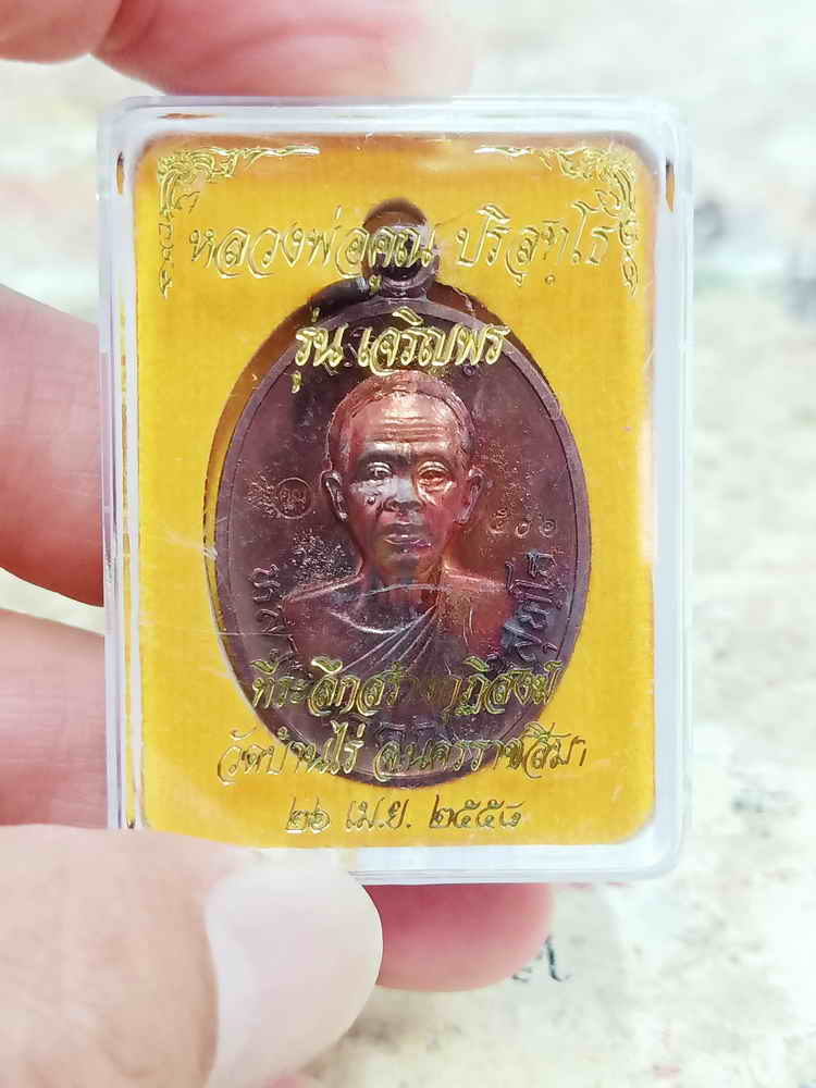 วัดใจ 100 เหรียยเจริญพร ที่ระลึกสร้างกุฏิสงฆ์ หลวงพ่อคูณ ปริสุทฺโธ วัดบ้านไร่ จ.นครราชสีมา 2558 ทองแดงผิวไฟ หมายเลข 506 กล่องเดิม