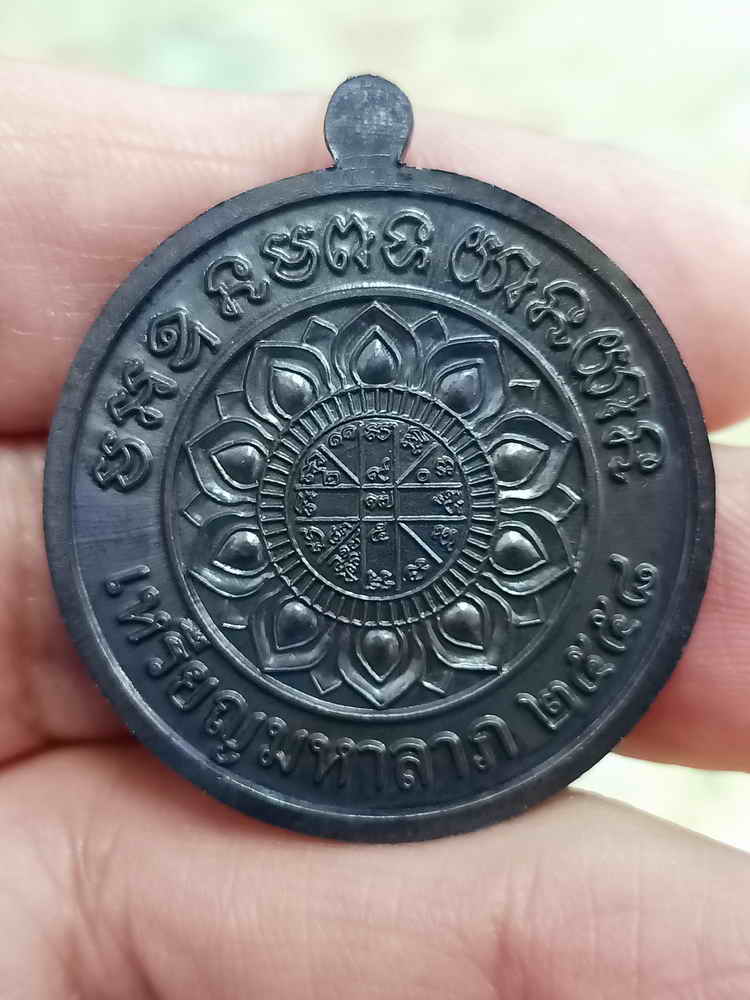 วัดใจ 100 เหรียญกลมเต็มองค์ มหาลาภแจกทาน หลวงพ่อคูณ ปริสุทฺโธ วัดบ้านไร่ จ.นครราชสีมา 2558 ทองแดงรมดำ หมายเลข 1490 กล่องเดิม