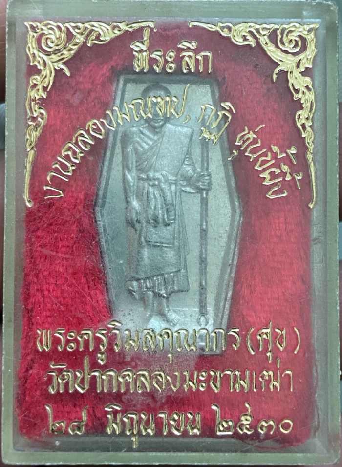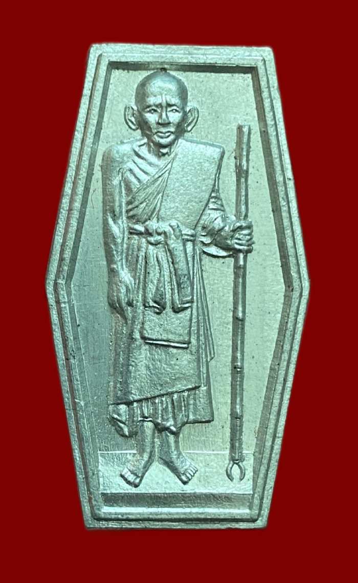 เหรียญยืนหกเหลี่ยม หลวงปู่ศุข วัดปากคลองมะขามเฒ่า จ.ชัยนาท ที่ระลึกงานฉลองมณฑป,กุฏิ,หุ่นขี้ผึ้ง ปี 2530