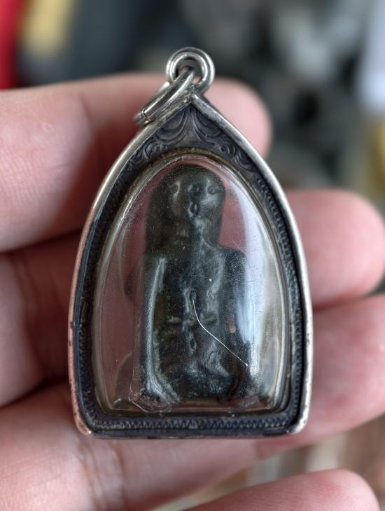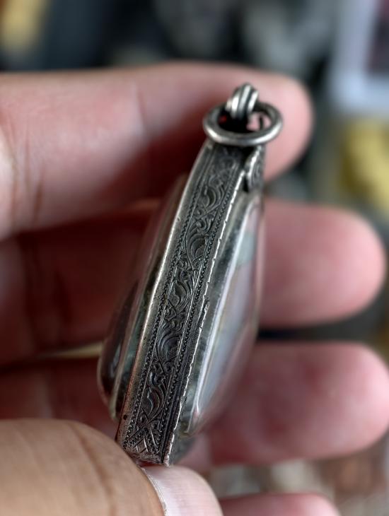 //เคาะแดง// พระหล่อโลหะปิดตา เลี่ยมกรอบเงินพับหลังสวยๆ เก่าไม่ทราบที่ครับ