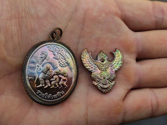 แพ็คคู่อาจารย์แดงป้อมรามัญ เหรียญชูชกรุ่นรวยให้เพลิน และพญาครุฑหลังยันต์หนุนดวง 5 แถว รุ้งๆสวยๆ(เคาะเดียวแดง) |