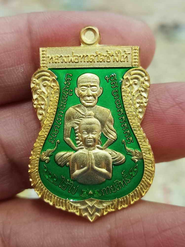 วัดใจ 100 เสมาพุฒซ้อน ปู่ทวด ไอ้ไขกายสิทธิ์ วัดเวสมาเมือง จ.นครศรีธรรมราช 2563 กะไหล่ทอง ลงยาราชาวดีเขียว หมายเลข 773 กล่องเดิม