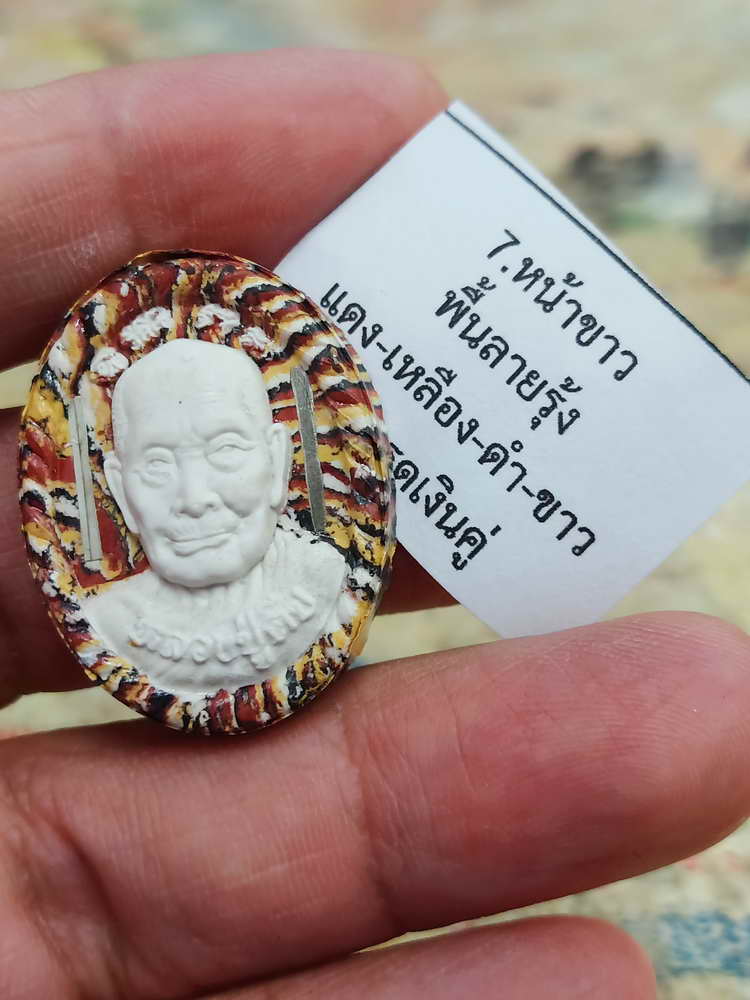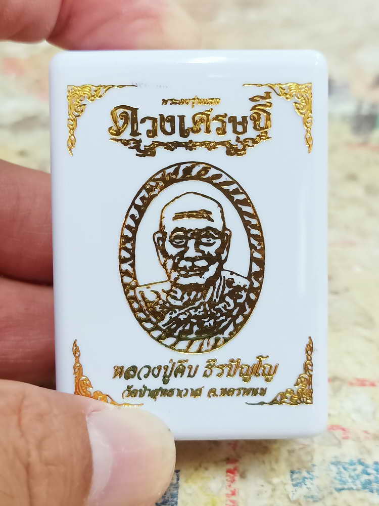 วัดใจ 100 พระผงรุ่นแรกดวงเศรษฐี 9 รอบ หลวงปู่คีบ ธีรปัญโญ วัดป่าสุทธาวาส จ.นครพนม ปี 2567 หน้าขาว พื้นรุ้ง ตะกรุดเงิน หมายเลข 47 กล่องเดิม |