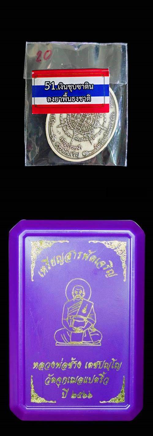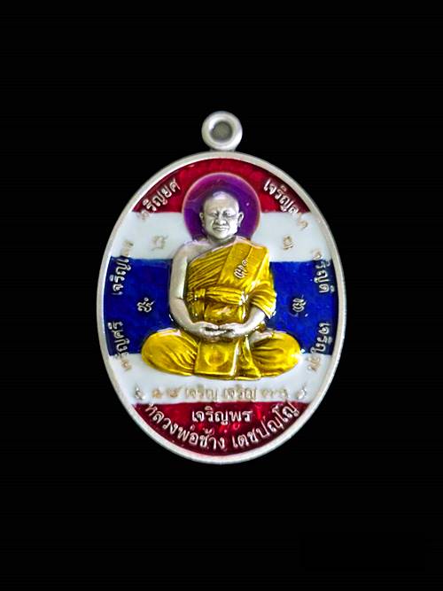 พระ เหรียญสารพัดเจริญ ปี 2566 หลวงพ่อช้าง วัดจุกเฌอ แปดริ้ว "เนื้อเงินชุบซาติน ลงยาธงชาตื" (เงินแท้) No,๒๐ สร้าง 30 เหรียญ โซน B หลังประทับยันต์มงกุฏพระพุทธเจ้า พุทธคุณ108ไม่ผ่านการใช้งาน เหรียญสวยมาก
