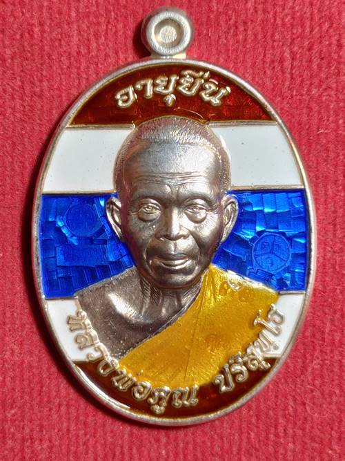 เหรียญหลวงพ่อคูณ ปริสุทโธ รุ่น อายุยืนบน 91 ออกวัดป่าตุ๊กตาทอง ปี 57 เนื้อ เงินลงยาสีธงชาติ หมายเลข 32 สภาพสวย เคาะเดียวแดง