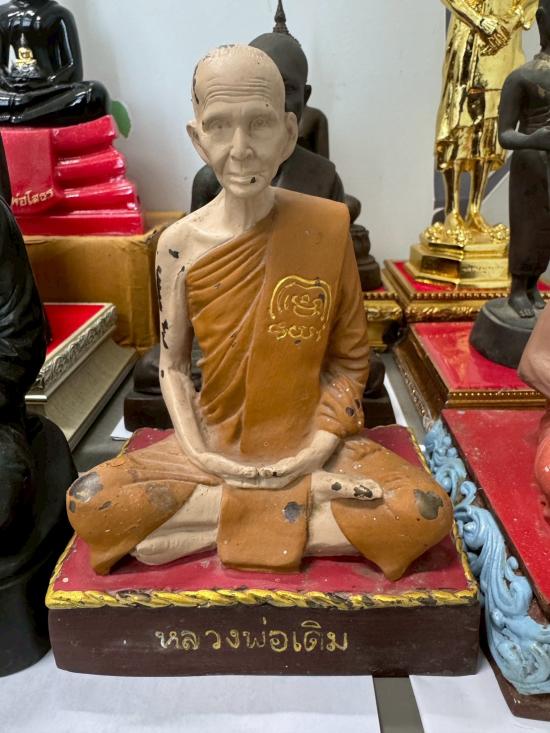 พระบูชาหลวงพ่อเดิม วัดหนองโพธิ์ นครสวรรค์ ใต้ฐานยันต์ดวงมงคล หน้าตัก 4.5 นึ้ว ฐาน 4.8 นึ้ว สูง 7 นึ้ว เพ้นส์สี ราคาตามสภาพ ไม่ทราบปี